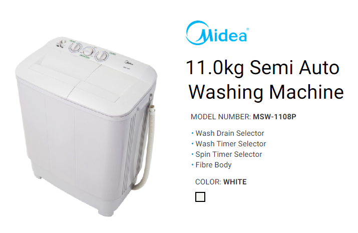 MIDEA - MIDEA 11.0 KG SEMI AUTO WASHER MSW-1108P